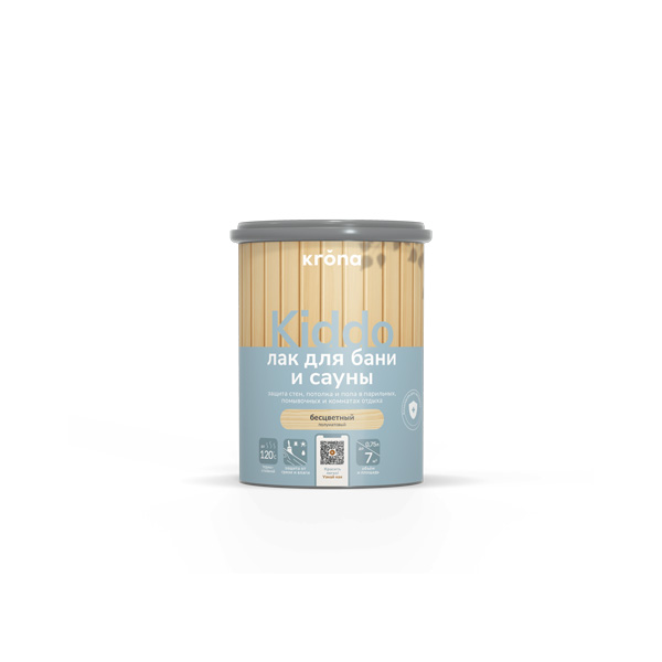 Лак термостойкий Krona Kiddo® на водной основе предназначен для защиты древесины от интенсивного периодического воздействия температуры и влажности, а также биопоражений.