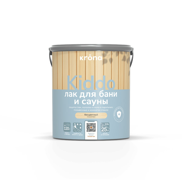 Лак термостойкий Krona Kiddo® на водной основе предназначен для защиты древесины от интенсивного периодического воздействия температуры и влажности, а также биопоражений.